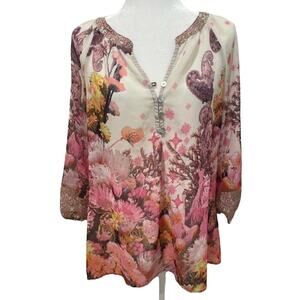 Anthropologie Fig and Flower Boho Blouse Floral Chiffon Peasant- Medium