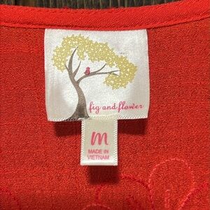 Fig & Flower brand boho top. Size medium. Red. Button front. Floral embroidery detail. Textured. Stretch material. Hi low curved hem. Light feel. 3/4 button hem sleeves. Dress up or down. All seasons blouse. Preloved. Please see all photos for condition.