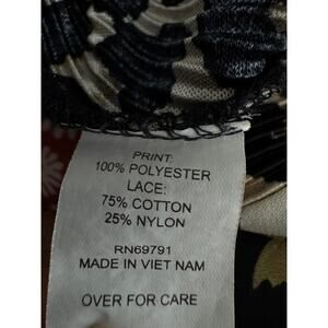 Fabric Content: Body - 100% Polyester; Lace - 75% Cotton, 25% Nylon