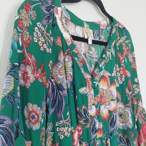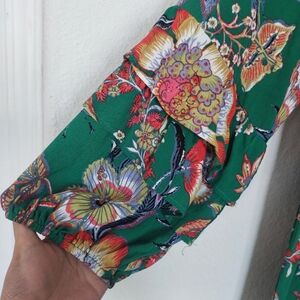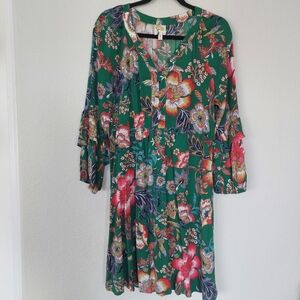 Fig and Flower Green Ruffled Tiered Sleeve Floral Dress Size Large