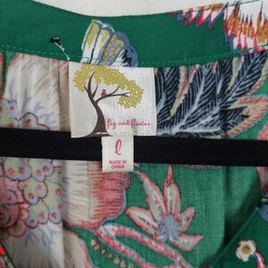 Fig and Flower Green Ruffled Tiered Sleeve Floral Dress Size Large. Pre-owned but in great condition
