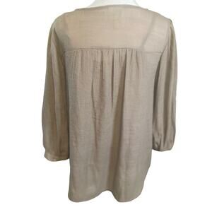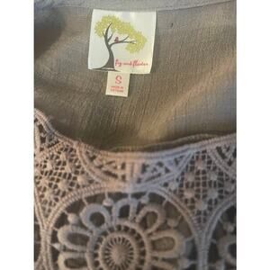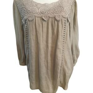 Fig and Flower Taupe Blouse with Lace Yoke and Front Details Size Small