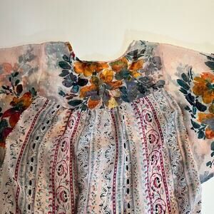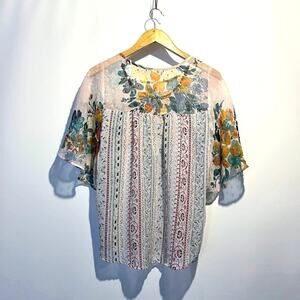 Fig and Flower Top Size S Sheer Flutter Sleeve Semi Sheer Lace