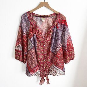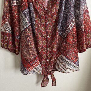 Fig and Flower Top Womens 3X Plus Floral Sheer Button Up Tunic Boho Tropical