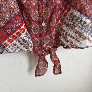 Fig and Flower Top Womens 3X Plus Floral Sheer Button Up Tunic Boho Tropical