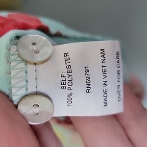 Beautiful sea green color with mixed bold colored florals. Has 4 pearlescent colored buttons at the chest. Lightweight fabric, doesn't stretch. Minimally sheer. Oversized. The back is one solid floral pattern, the front has the mixed pattern. Slight high low style. Great condition. 3/4 length sleeves with elastic at the end of the sleeve. office, workplace, garden, botanical, vibrant, colorful, hippie, business, sorting, summer, anytime, everyday, brunch, classy