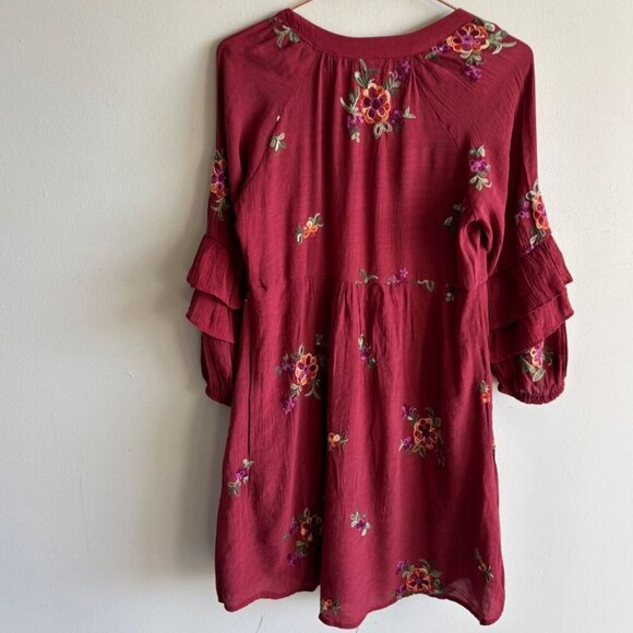 The Fig and Flower Women's Embroidered Floral Dress in red (Size Small) features intricate floral embroidery, a flattering fit, and a chic design, making it perfect for casual outings or special occasions.