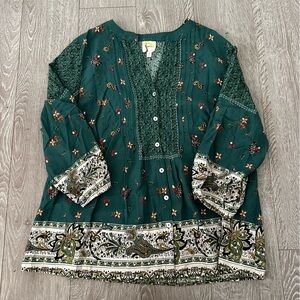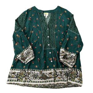 Fig and Flower Womens Floral Print Peasant Blouse Shirt Top Size Large