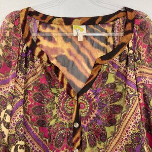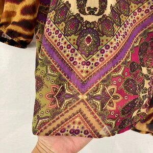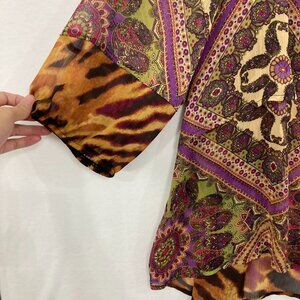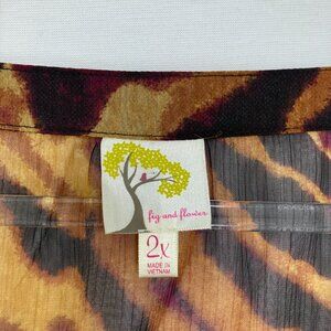 Fig and Flower size 2X Multi Color Boho Mixed Media Animal Print Soft Flowy Top