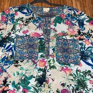 Fig and Flower women’s large 12 14 top tunic high low Paisley Print 3/4 sleeves