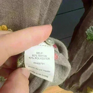 Fig and flower embroidered flowy long sleeve top medium