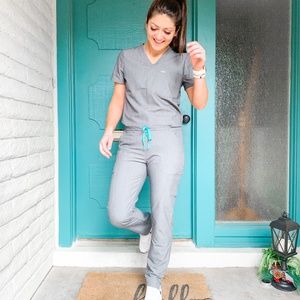 Figs scrubs set Color: graphite One pocket scrub top size small Kade cargo pant size small Worn once and they are a little too big for me