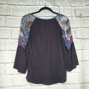 Fig and Flower Floral Blouse Shirt Womens Small black flutter sleeve casual wear