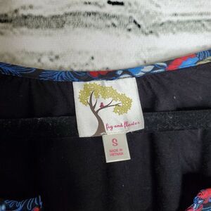 Fig and flower Floral Blouse Shirt Womens Small black flutter sleeve casual wear.