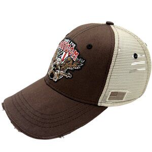 “Fight for Freedom” Eagle Pistols Mesh Trucker Hat – Brown & Cream Patriotic Cap