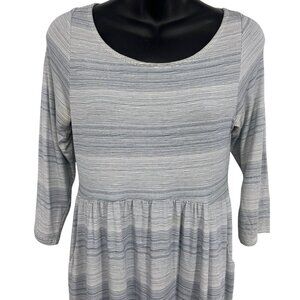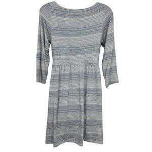 Fighting Eel Dress Size Medium M Women Gray Stripe 3/4 Sleeve A-Line Rayon VGUC