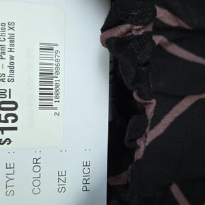 New with tags, Fighting Eel designed the Ava Sky woven brand, Pant Chico in XS. Color is Shadow Hashi. Black with beige geometric pattern.