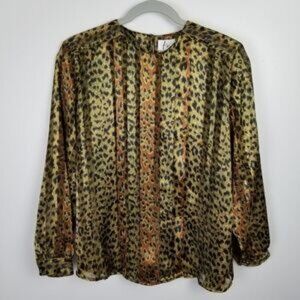 Figi Cheetah Print Silky Blouse Women's 6 Pullover Animal Print Long Sleeve