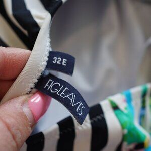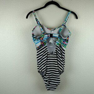 Figleaves 32E One-Piece Swimsuit Stripe & Floral Print Underwire Back Cutout