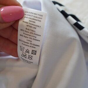Fabric: 80% nylon, 20% elastane (body); 84% nylon, 16% elastane (powernet lining); 82% polyester, 18% elastane (lining)