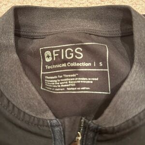 Stylish black jacket by Figs. Features front zipper and pockets. Perfect for professional wear. Size small. Excellent condition.