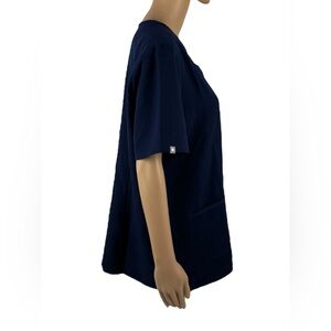 Experience comfort and style with this Figs top, featuring a relaxed, boxy fit and short sleeves. The deep blue color adds a touch of elegance to this versatile tee, perfect for professional settings. Crafted with attention to detail, this top ensures a polished look throughout your day.