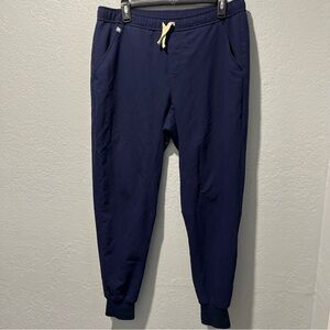 These Figs sweatpants feature a sleek tapered leg design and a relaxed fit, crafted in a soft, athletic-inspired fabric. The deep blue color and minimalistic style make them perfect for both casual outings and athletic activities. (N)