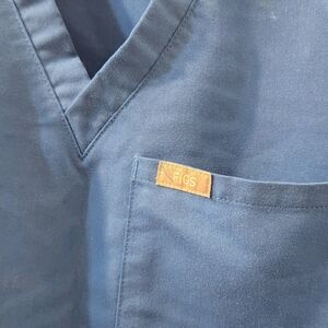 Comfortable blue scrub set by Figs. Includes top and pants. Ideal for medical professionals. Pants are XS - Petite.