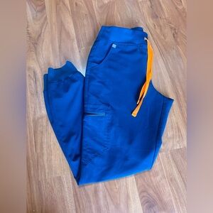 Discover the perfect blend of style and comfort with these Figs joggers, featuring a striking blue hue complemented by orange accents. Crafted from soft, breathable fabric, these track pants offer a relaxed fit ideal for both athletic pursuits and leisurely lounging. The elastic waistband ensures a secure and comfortable fit, making them a versatile addition to any wardrobe.