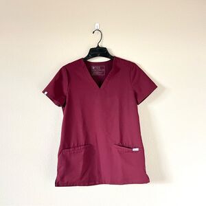 This is a scrub top and pant set by Figs! In Burgundy color. Top is in the Casma 3 pocket style. Size XXS. Pants are in the Zamora jogger style. Size XXSP. In great condition!