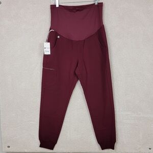Figs Burgundy Zamora Maternity Jogger Scrub Pants Sz M NEW