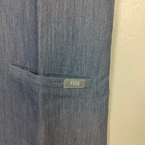 Figs Casma Scrub Top Womens XS Heather Denim Gray V-Neck Pockets Short Sleeve