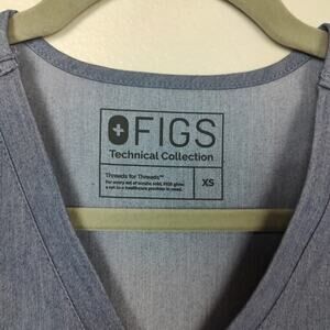 Figs Casma Scrub Top Womens XS Heather Denim Gray V-Neck Pockets Short Sleeve 63