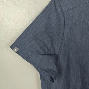 Figs Casma Scrub Top Womens XS Heather Denim Gray V-Neck Pockets Short Sleeve