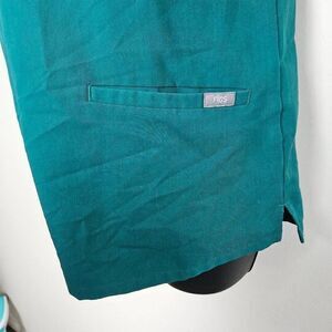 The Casma Three-Pocket Scrub Top by FIGS in Hunter Green is a stylish and functional medical scrub top designed for healthcare professionals. Made from FIGS' proprietary FIONx fabric, it offers a four-way stretch, moisture-wicking, and anti-wrinkle features, ensuring comfort and ease of movement during long shifts.