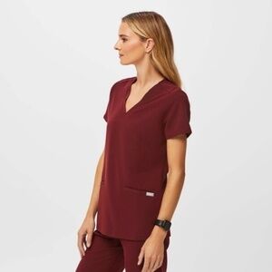 Figs Casma Three-Pocket Scrub Top Burgundy