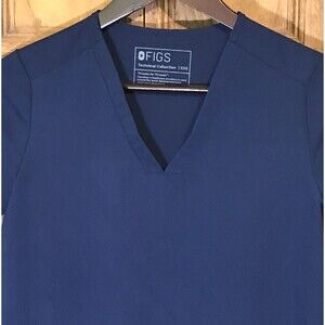 Figs Casma Three-Pocket Scrub Top. Women's size XXS, Navy Blue, Poly/Rayon/Spandex, V-Neck Scrubs. Darted Back & Side Slits for comfort. Scrubs for Nurse, Vet, Dental, Medical. Style FW1100.