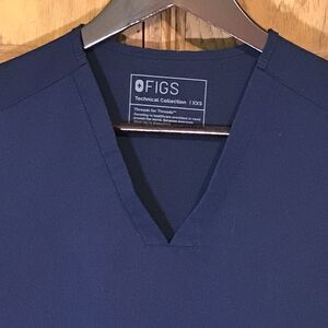 Figs Casma Three-Pocket Scrub Top. Women's size XXS, Navy Blue, Poly/Rayon/Spandex, V-Neck Scrubs. Darted Back & Side Slits for comfort. Scrubs for Nurse, Vet, Dental, Medical. Style FW1100.