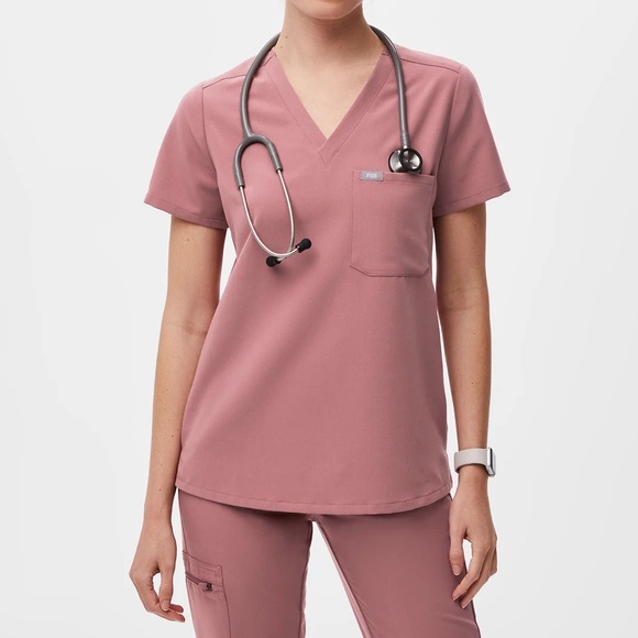 Figs Catarina One Pocket Scrub Top Mauve Size Small