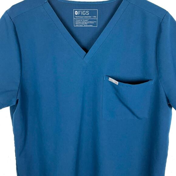 Figs Catarina One-Pocket Scrub Top Blue V-Neck Darted Back Short Sleeve Size XXL