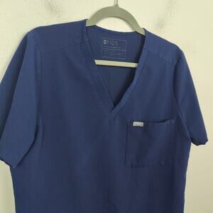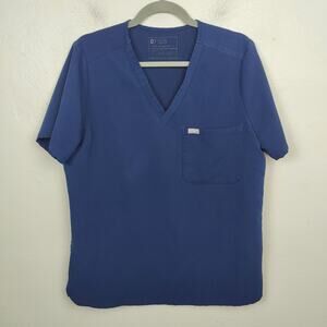 Figs Catarina Scrub Top Womens Large Dark Navy Blue V-Neck Pocket Short Sleeve