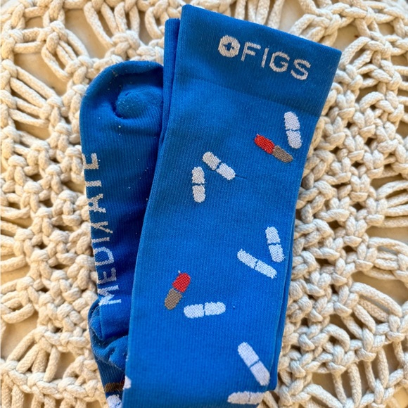 Bright blue socks with playful pill design. Ideal for everyday wear.