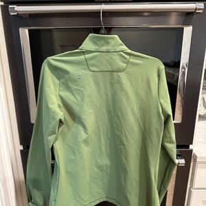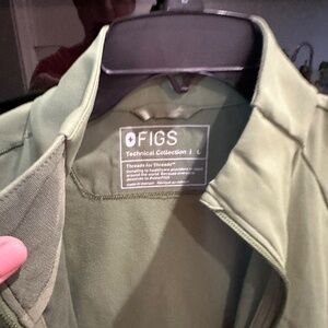 Up for sale is a Figs Contour Jacket size large, in limited color, Fern. This has been worn once, no sign of any wear, no smell. The Contour Jacket runs on the smaller size. I usually wear of medium, and this jacket fit fine in a size large. There are 4 outside pockets and inside there are 3. 7 total pockets.