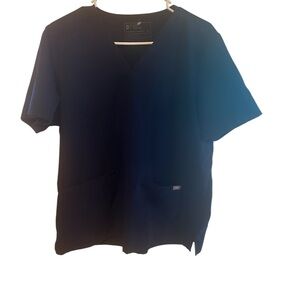 Soft and stylish scrub top. Features short sleeves and practical pockets. Ideal for healthcare professionals.