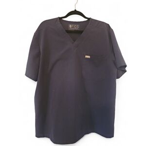 Classic Figs scrub top in deep blue. V-neck design with short sleeves and chest pocket.