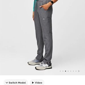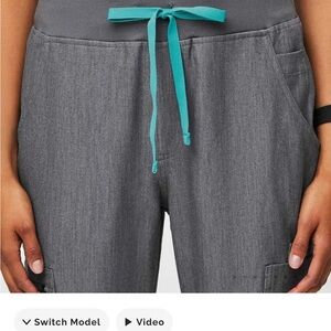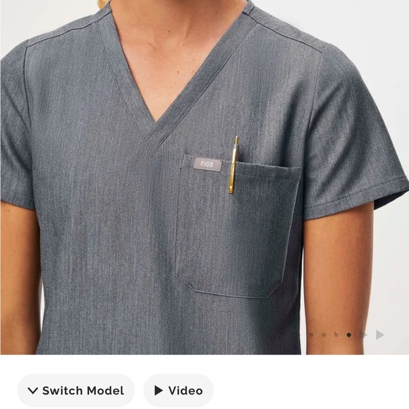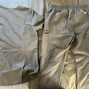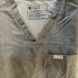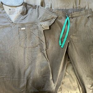 Graphite V-neck one pocket scrub top with Yola bottoms by Figs.