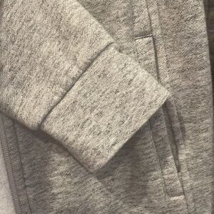 Stylish gray utility jacket. Features a full zip front and hood. Comfortable and versatile.