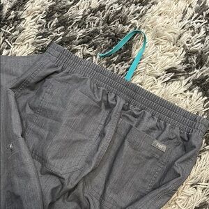 These Figs sweatpants combine style and comfort with their sleek gray and blue design. Featuring a drawstring waist, they offer a customizable fit perfect for lounging or casual wear. The tapered leg adds a modern touch to these versatile pants.