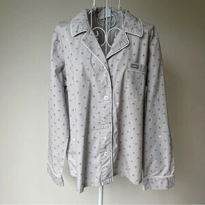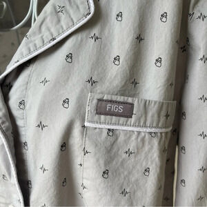 Figs Heart Gray Lounge Top novelty print long sleeve button up Size M