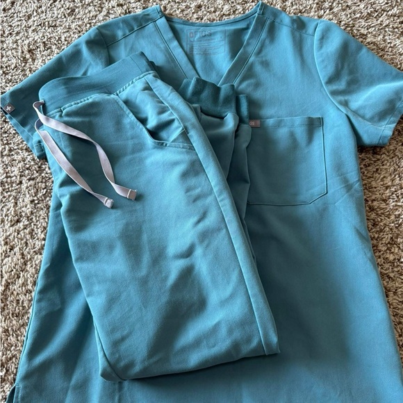 Hydrogreen Figs. Small Catarina top. Small PETITE zamoras. Lightly worn.